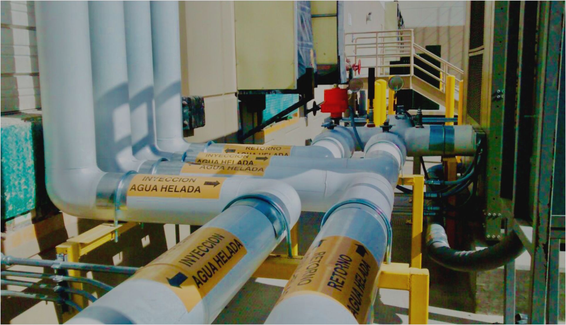 Sistema de aire acondicionado y ventilación para Nueva Planta de producción en la ciudad de Irapuato Gto. Sistema Utilizado es A.A. con agua helada y extracción, sistema de automatización y control